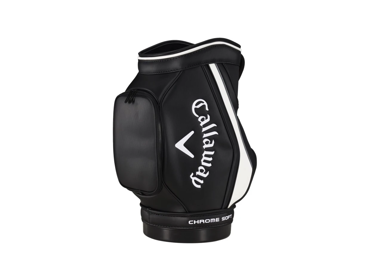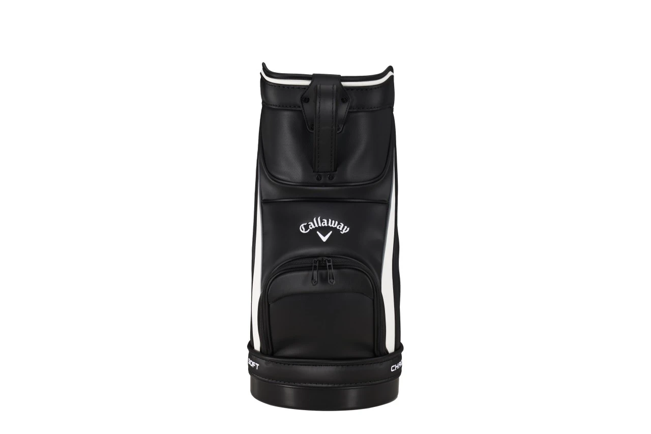 Das Design des Den Caddy ist ansprechend und hochwertig. Der Körper besteht aus strapazierfähigem und wasserabweisendem Polyester und ist in verschiedenen Farbkombinationen erhältlich. Das Callaway-Logo auf der Vorderseite rundet das Gesamtbild ab.